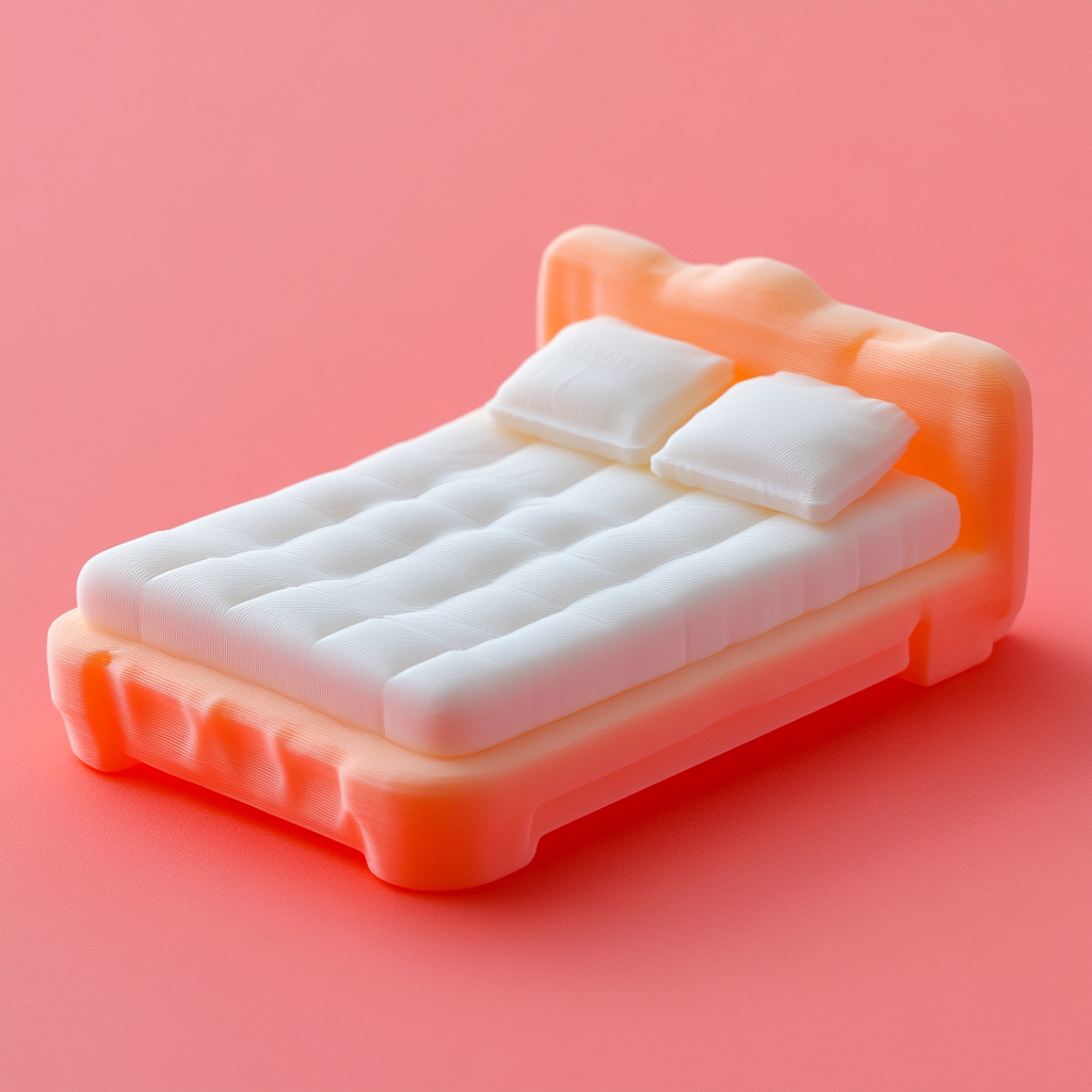 This charming, soft-edged miniature bed brings classic comfort to your scale model interiors. The bed is beautifully textured with a tufted mattress effect and a pillowy surface, complemented by two raised pillows and an elegant curved headboard. A subtle gradient base adds warmth and depth, making it ideal for traditional or transitional architectural model environments. Designed with precision, it evokes both realism and coziness. Perfect for 1:50 or 1:100 scale model setups.
